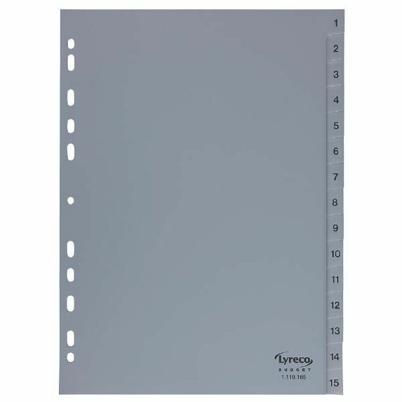 Lyreco Register Budget 1-15, A4, aus Kunststoff, 15 Blatt, grau
