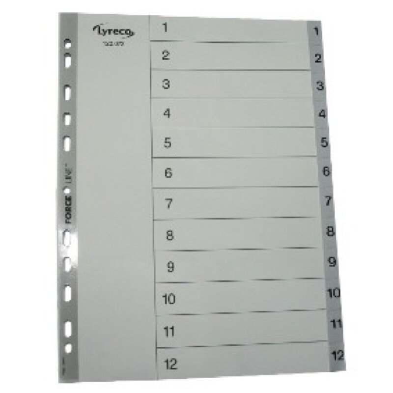 Lyreco Register 1-12, A4, aus Kunststoff, 12 Blatt, grau