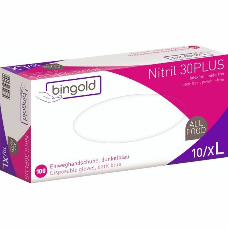 Bingold Einweghandschuhe Bingold Nitril 30Plus, puderfrei, Gr. 10/XL, blau, 100 Stück