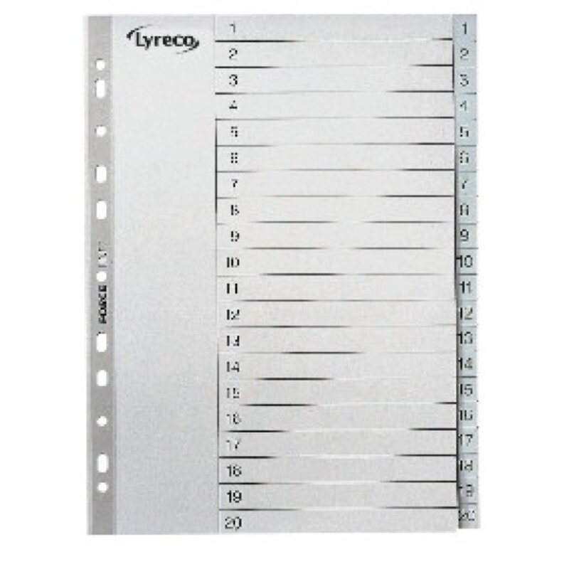 Lyreco Register 1-20, A4, aus Kunststoff, 20 Blatt, grau