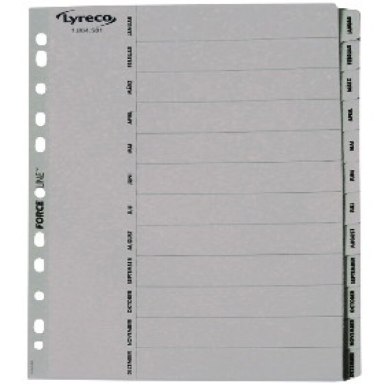 Lyreco Register Jan-Dez, A4, aus Karton, 12 Blatt, weiß