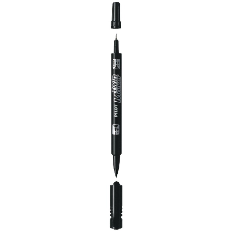 Der Pilot Twin Permanentmarker verfügt über zwei Spitzen mit unterschiedlichen Strichbreiten (0,4 mm und 0,8 mm)- Die pigmentierte Tinte ist wasserfest, lichtbeständig und xylolfrei, wodurch der Marker für eine Vielzahl von Oberflächen geeignet ist