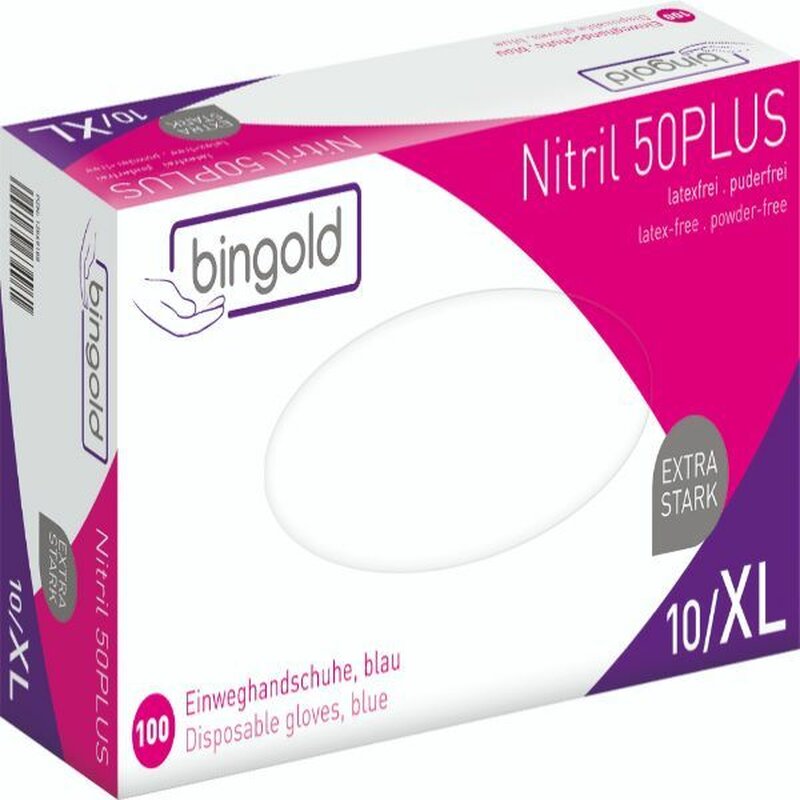 Bingold Einweghandschuhe Bingold Nitril 50Plus, puderfrei, Gr. 10/XL, blau, 100 Stück
