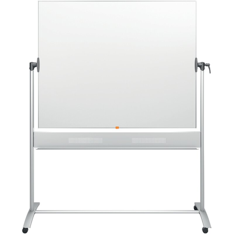 Doppelseitige Schreibtafel, horizontal drehbar um 360°, mobil dank Laufrollen. Oberfläche aus Stahl. Relativ resistent gegen Flecken, Stiftspuren, Kratzer und Dellen. Leicht zu reinigen, häufige Reinigung empfohlen. Lieferung inklusive 1 nobo® Stift.- Oberfläche: lackiert