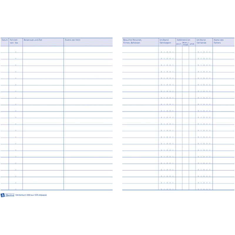 AVERY Zweckform® Fahrtenbuch, Karton, A5 hoch, Recycling, weiß, Einband: blau, 32 Blatt